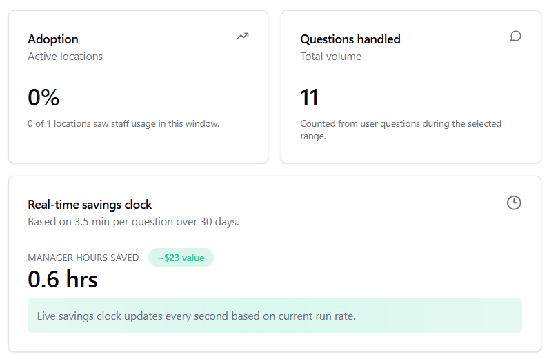 Stop guessing where your team is struggling. Monitor staff questions as they happen. If everyone is asking about the "Closing Checklist," you know exactly what SOP to fix.